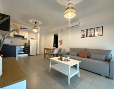 Retreat to the tranquil double bedroom, where plush linens cradle you in blissful comfort, ensuring a restorative night’s sleep. The black -out blinds together with the air condition will make your sleep last longer, bidding you to embark on another day of seaside splendor.